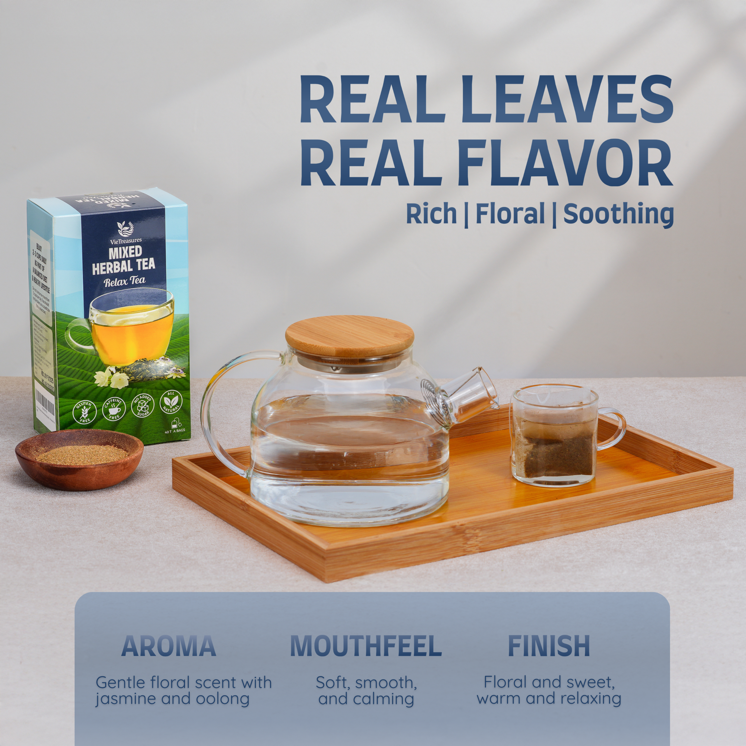 Relax Herbal Tea with Jasmine Oolong – 2.8oz (40 Tea Bags) | Tieguanyin Base with Ampelopsis, Passionflower & Honeysuckle | Jasmine Infusion, Caffeine-Free, Relax & Digestive Support