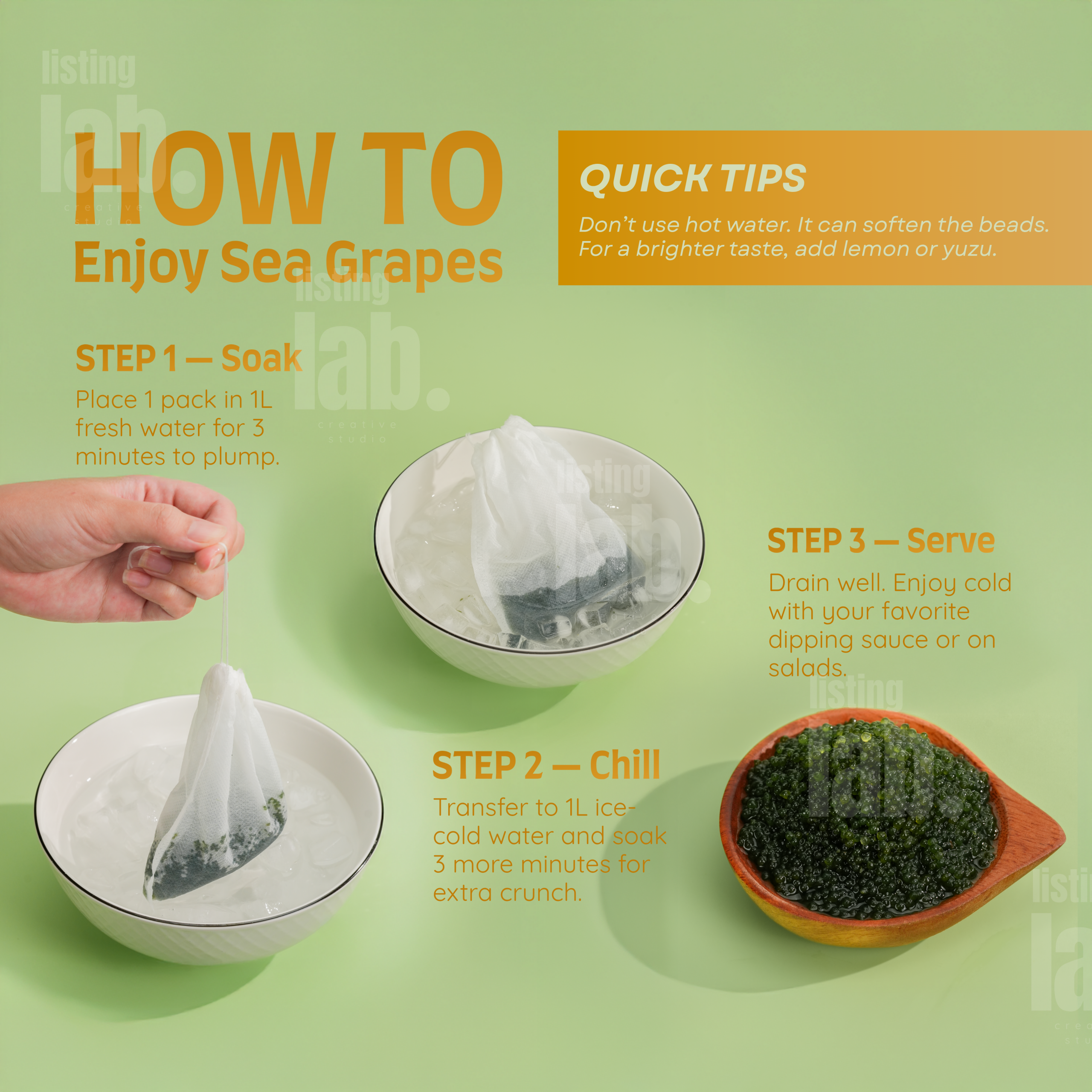 - ✨ Unique Popping Texture: Sea grapes pearls, also known as green caviar, deliver a crisp, popping bite that adds a fun and refreshing touch to salads, sushi, or rice bowls.