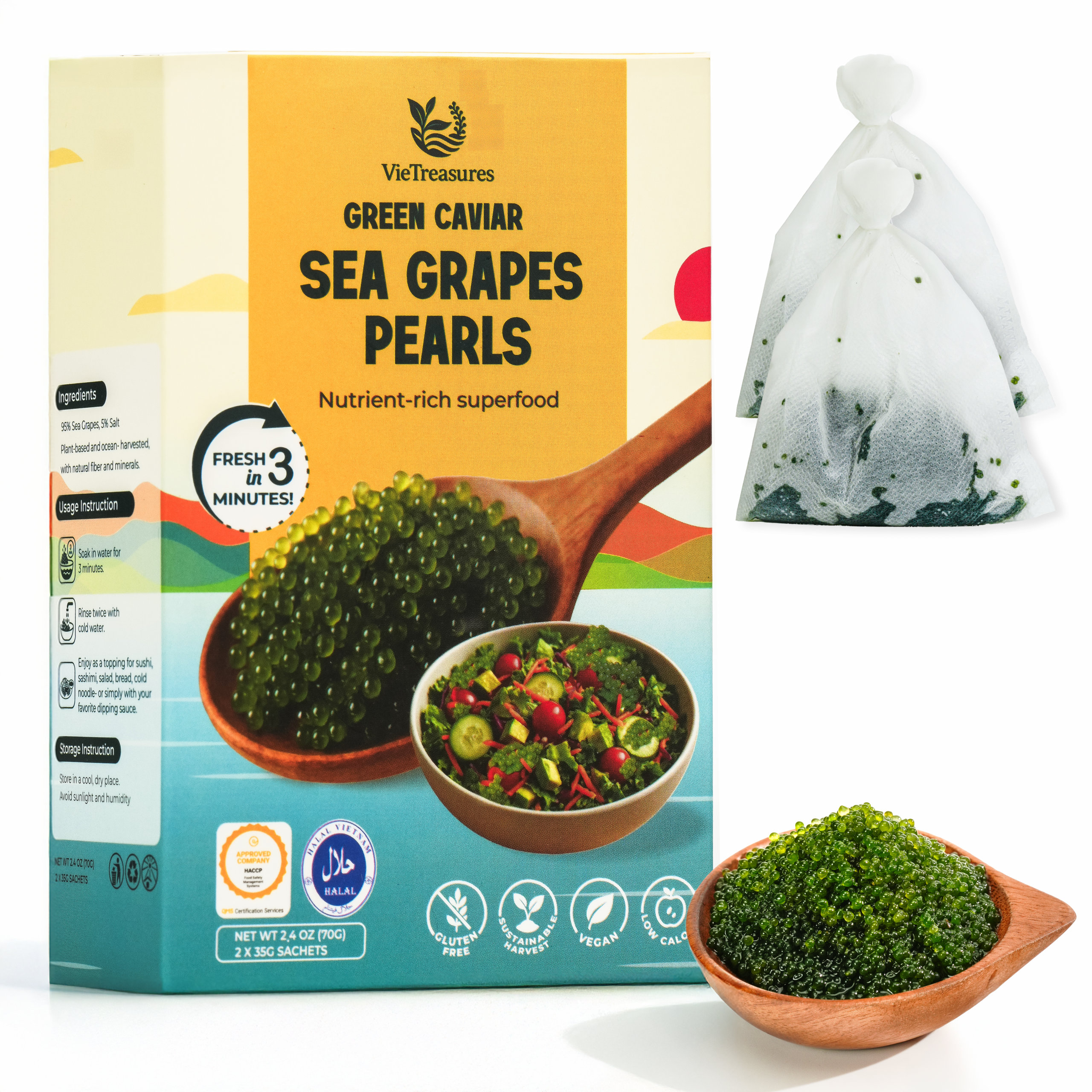 - 🌊 Sustainably Harvested in Vietnam: 100% natural and carefully sourced from the clean seas of Vietnam, ensuring premium quality sea grapes that are safe, and responsibly harvested.