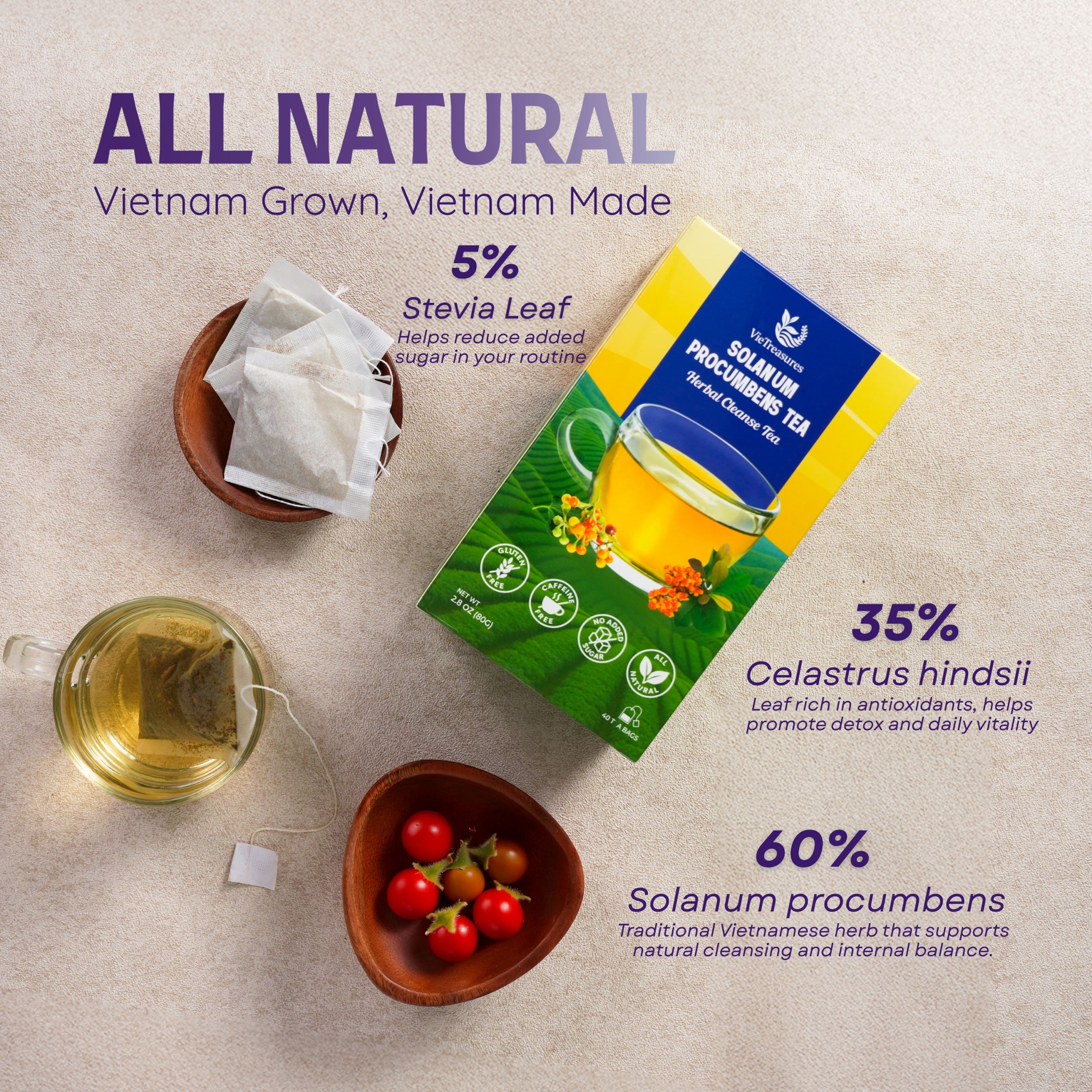 Solanum Procumbens Leaf Tea – 2.8oz (40 Tea Bags) | With Celastrus and Stevia Blend | Caffeine-free, Gluten-free, Sugar-free Herbal Cleanse Tea for Relax, Energy & Inner Health Support